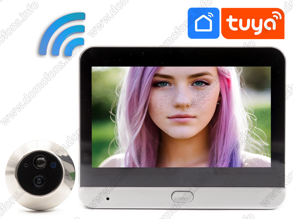 Беспроводной TUYA-WiFi видеоглазок в виде обычного «iHome 3S-TW» с записью на SD, монитором 4.3 дюйма и камерой 2Mp позволяет видеть все происходящее за входной дверью дистанционно со смартфона (Android, iOs) и компьютера из любой точки мира через бесплатное приложение, а также на цветном экране диагональю 11 см. Для подключения к сети Интернет используется беспроводная сеть Wi-Fi, а для питания – встроенный аккумулятор, что избавляет от необходимости прокладывать провода.