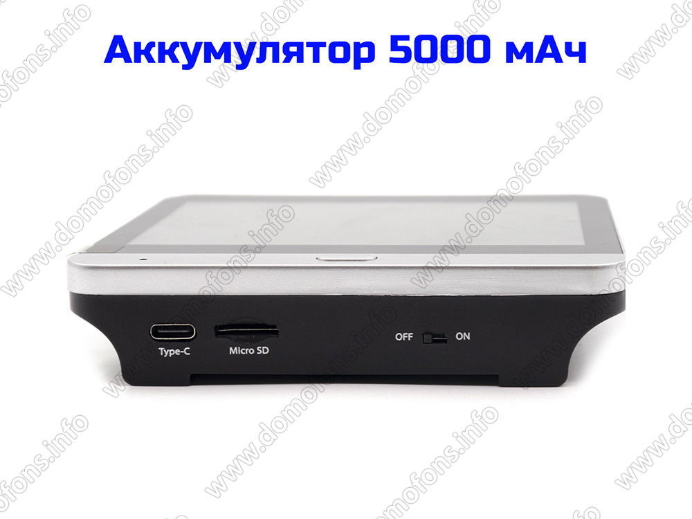 Питание от встроенного аккумулятора. Видеоглазок работает автономно продолжительное время от встроенного аккумулятора емкостью 5000 мАч.
