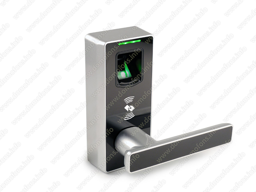 Открытие по отпечатку пальца. В данном электрическом замке используется биометрическая технология, что позволяет открывать замок, приложив палец, который зарегистрирован в памяти, память замка позволяет хранить до 90 отпечатков пальцев.