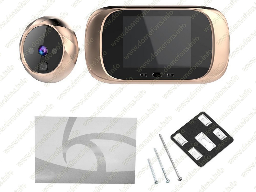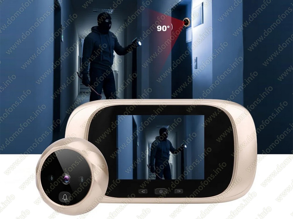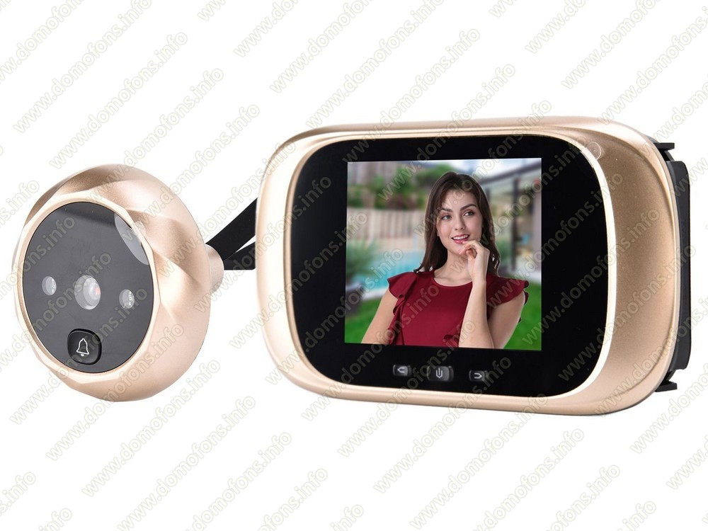 Видеозвонок. На камере видеоглазка расположена кнопка звонка, при нажатии на нее посетителем поступит звонок, включится монитор и видеоглазок автоматически сделает фотографию.