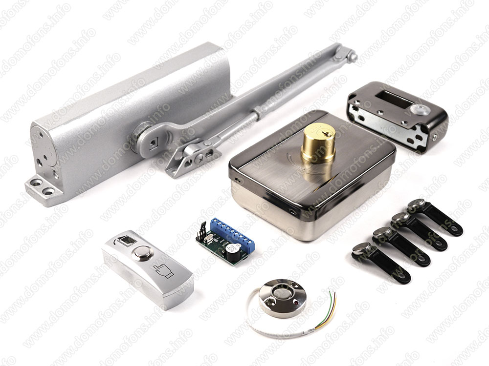 Полностью готовый комплект, в котором есть все, чтобы создать контроль доступа в охраняемое помещение: электромеханический замок, считыватель «touch memory» с программированными ключами, контроллер Z-5R, кнопка выхода, доводчик.
