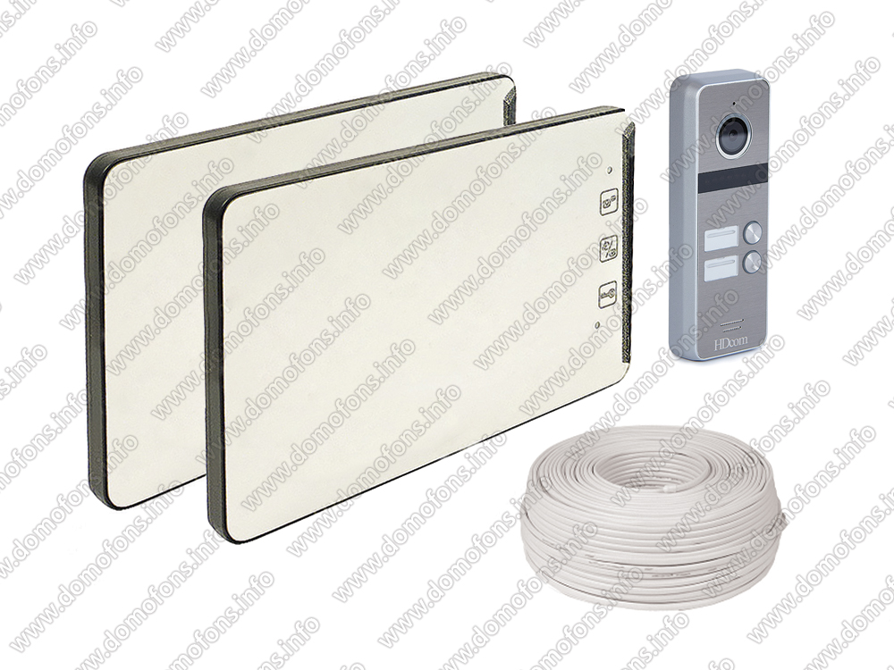 Видеодомофон на 2 квартиры: 2 монитора EP-2232 вызывная панель HDcom 84207-2-СR80 запись при вызове, питание панели от мониторов, управление электрозамком