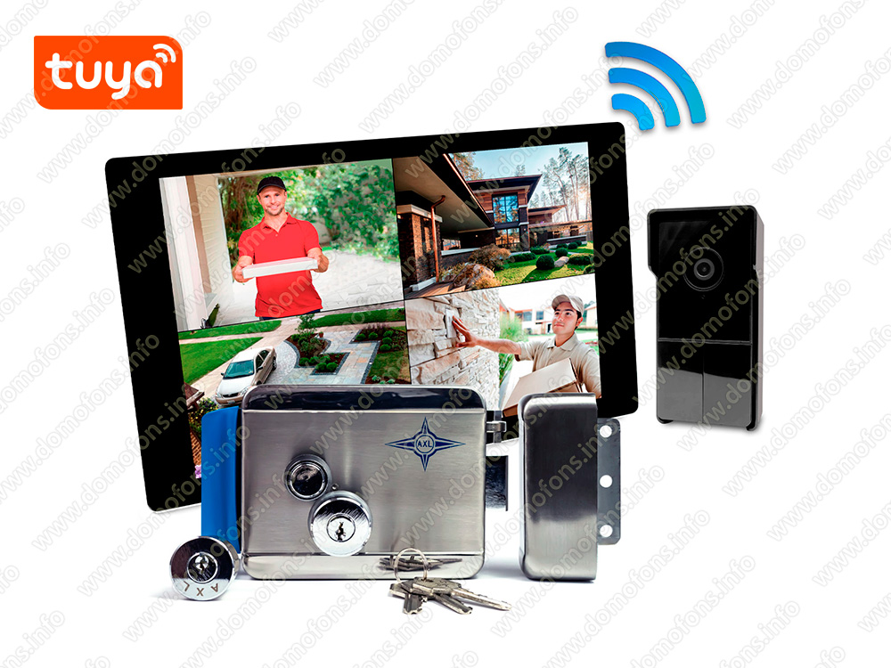 Работа со смартфоном.Система поддерживает дистанционный просмотр, прием вызовов и открытие замка через бесплатные приложения Tuya и Smart Life (Android; iOS).