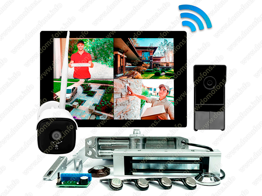 Все необходимое в комплекте: сенсорный 10,1" монитор, вызывная панель, камера, электромагнитный замок и все необходимое для монтажа.