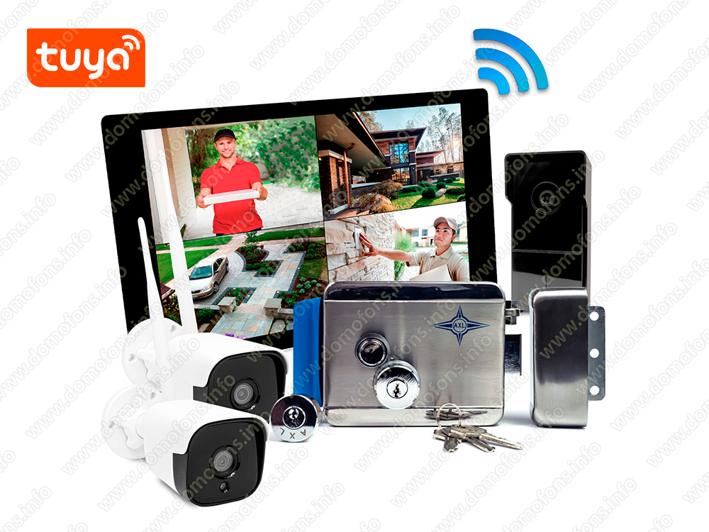 Работа со смартфоном.Система поддерживает дистанционный просмотр, прием вызовов и открытие замка через бесплатные приложения Tuya и Smart Life (Android; iOS).