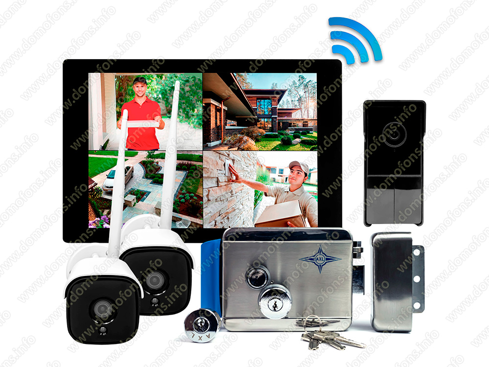Готовая система видеонаблюдения и контроля доступа.В комплекте сенсорный 10,1" монитор-видеорегистратор, вызывная панель, камера и электрозамок.