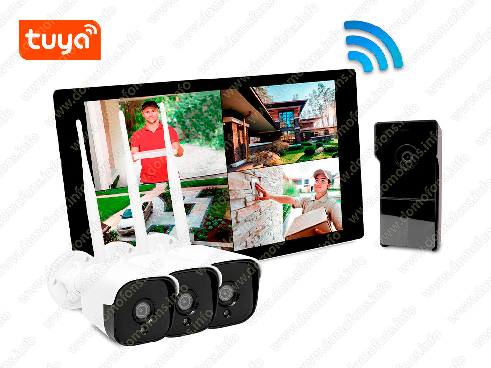 Комплект цветной Wi-Fi домофон TUYA с 3 камерами - "SkyNet 1000 (1+3)" работает по Wi-Fi на частоте 2,4 ГГц и не требует прокладки проводов между монитором, панелью и камерами. Дальность связи составляет до 100 метров (без преград). Домофон поддерживает дистанционный просмотр, прием видеовызовов и открытие замка (приобретается отдельно) со смартфонов.