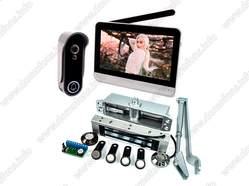 Беспроводной видеодомофон комплект «SkyNet 900 + PL-400G» Беспроводной домофон с записью на SD, беспроводная вызывная панель с видеокамерой 2MP и электромагнитный замок PL-400G.