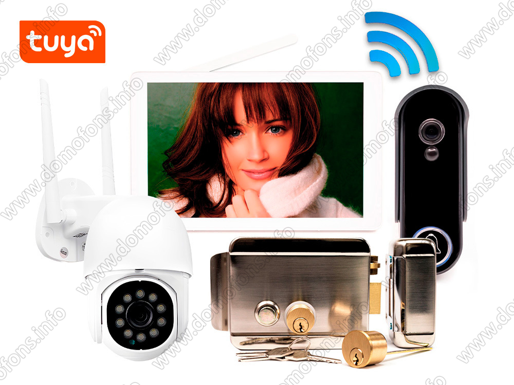 Комплект беспроводной Wi-Fi домофон «SkyNet 1100-Tuya (1+1+AX042)» предоставляет возможность создания полной системы наблюдения и контроля доступа на вашем участке. Он включает в себя сенсорный дисплей, поворотную уличную камеру наблюдения HDcom 9826-ASW5 с поддержкой Wi-Fi, вызывную панель с камерой и аккумулятором, а также накладной электромеханический замок AX042. Для управления и просмотра изображения удаленно можно использовать смартфоны, при наличии Wi-Fi с выходом в интернет.