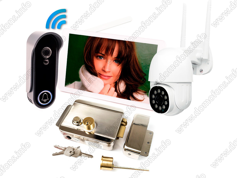 Комплексное решение для видеонаблюдения и системы контроля доступа. В комплект входят сенсорный 7-дюймовый экран, наружная панель, поворотная камера и электромеханический замок.