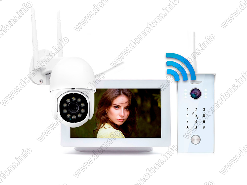 Беспроводная связь. Беспроводное соединение монитора и панели вызова осуществляется через радиоканал на расстоянии до 300 м (в прямой видимости, без преград).