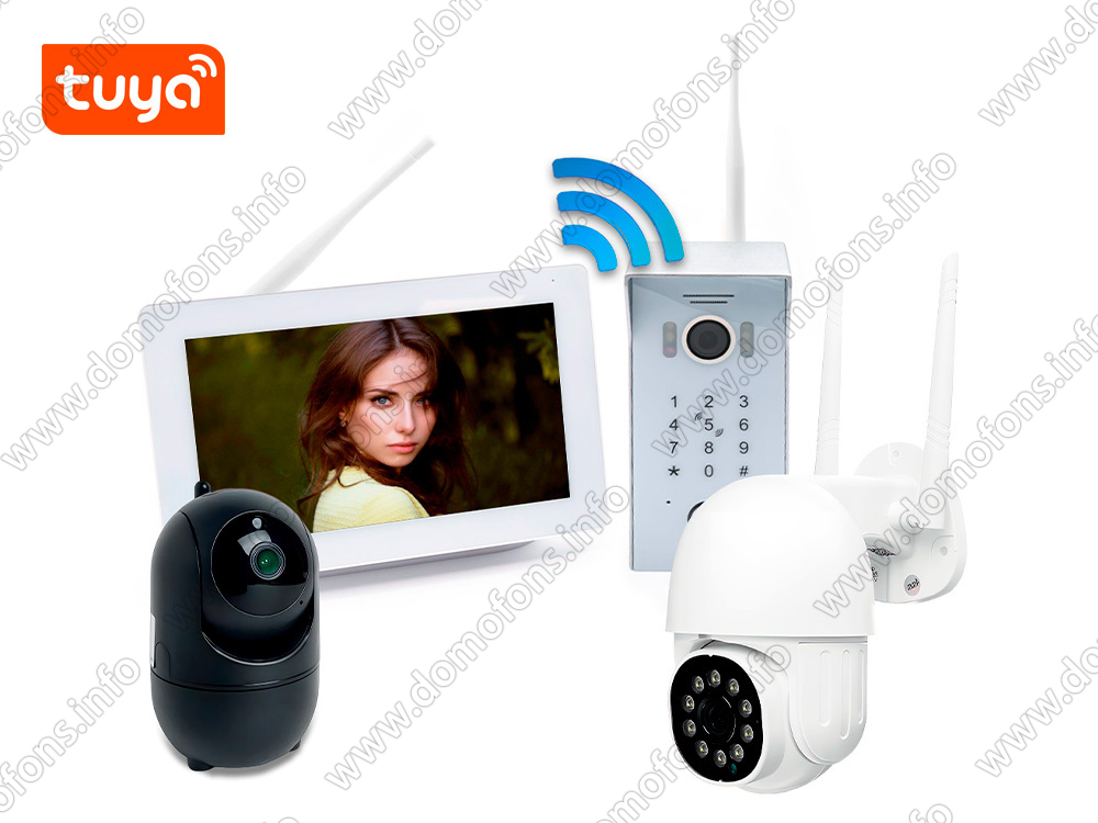 Беспроводной комплект домофона и 2 камеры для улицы и помещения «SkyNet 700-Tuya (1+1+1)» Беспроводной видеодомофон, вызывная панель EPC-81225 уличная Wi-Fi IP камера HDcom 9826-ASW5 и внутренняя Wi-Fi IP камера HDcom 288Bl-ASW5.