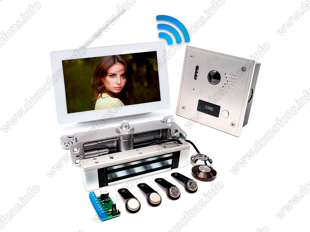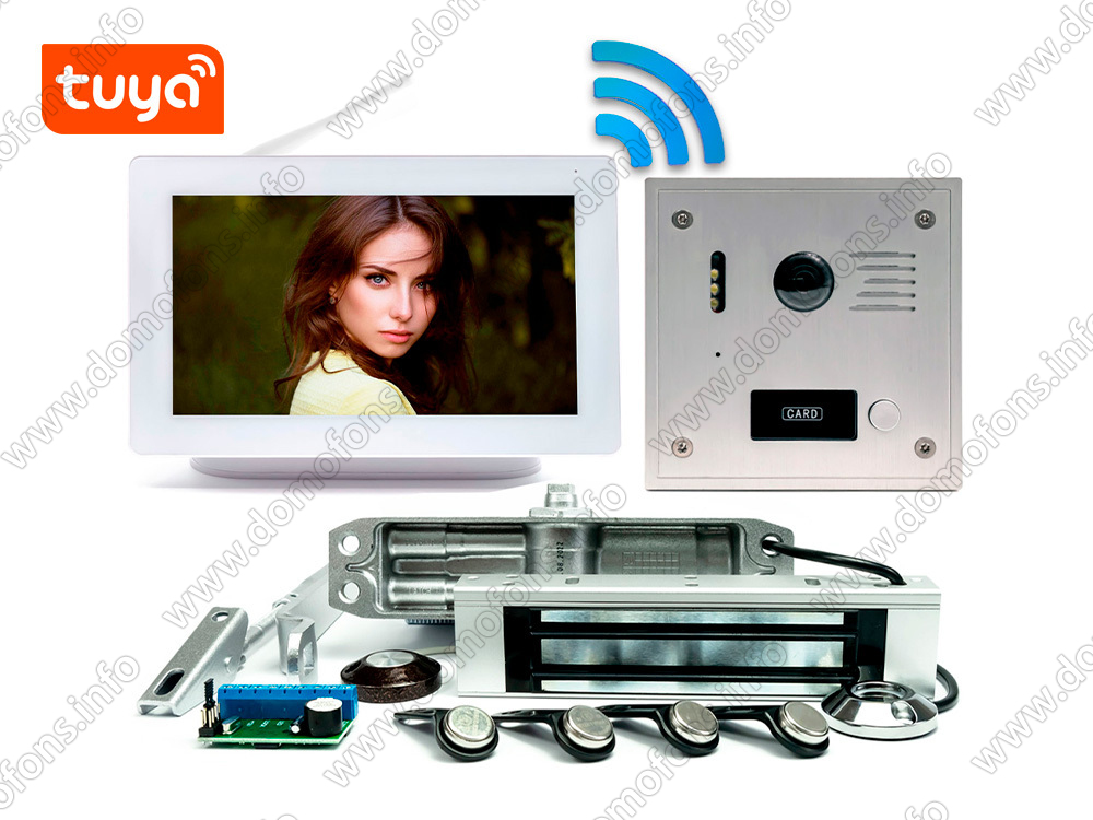 Беспроводной комплект Wi Fi домофона и замок PL-400G «SkyNet-Tuya 800 (1+0+400G)» Беспроводной видеодомофон, беспроводная антивандальная вызывная панель C-81223 и электромагнитный замок PL-400G. Дальность до 300м.