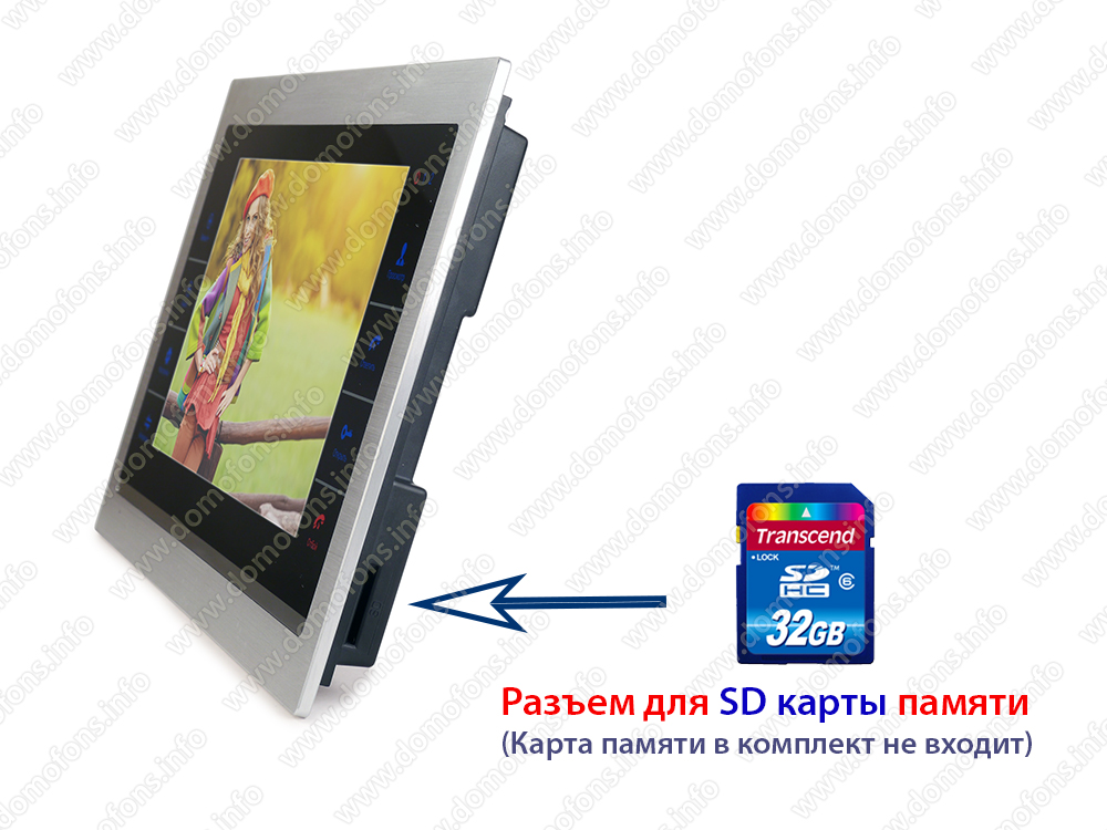 Функция видеозаписи по движению. Можно настроить на запись по движению один из каналов (видеопанель/видеокамера). При появлении движущегося объекта в объективе камеры, монитор автоматически начнет запись на SD-карту (приобретается отдельно).