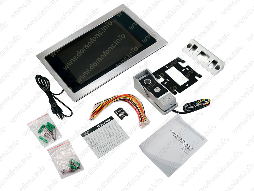 Комплект можно существенно расширить: система поддерживает установку до 2 дополнительных аналоговых или AHD видеокамер, 2 вызывных панелей, 2 охранных датчиков и 5 дополнительных мониторов. Видеодомофон имеет функцию автоматической записи видео по движению с одного из каналов и функцию селекторного интеркома между мониторами. Фото и видеофайлы сохраняются на карту памяти формата microSD объемом до 32 Гб (в комплекте не поставляется).