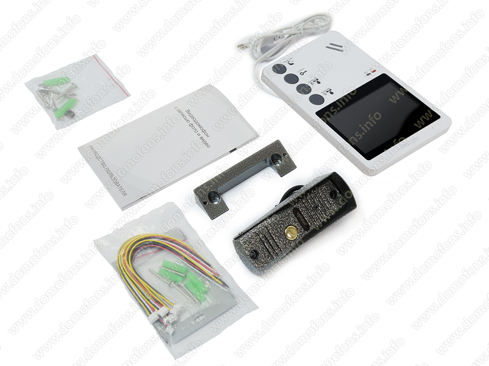 Крепеж в комплекте. Весь необходимый крепеж и кронштейны для монтажа монитора и вызывной панели поставляются в комплекте.