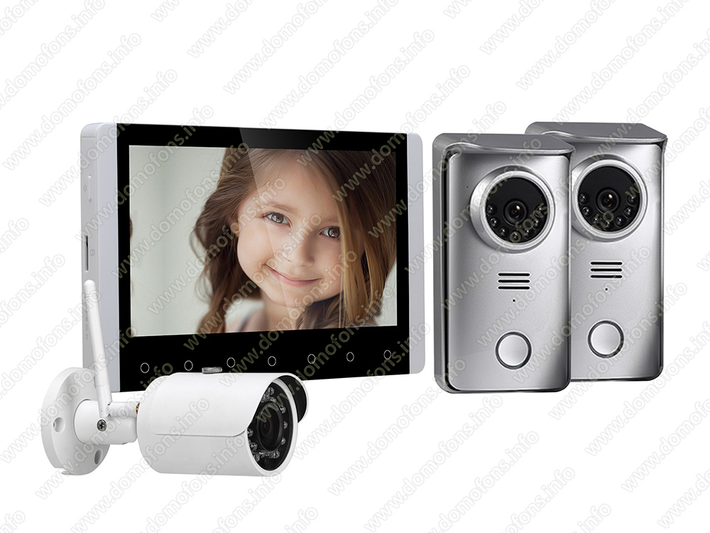 Беспроводной видеодомофон Skynet C70 (2+1) – это комплект, состоящий из качественного 7-дюймового монитора, двух вызывных панелей со встроенной камерой и одной дополнительной камеры для расширения области наблюдения.