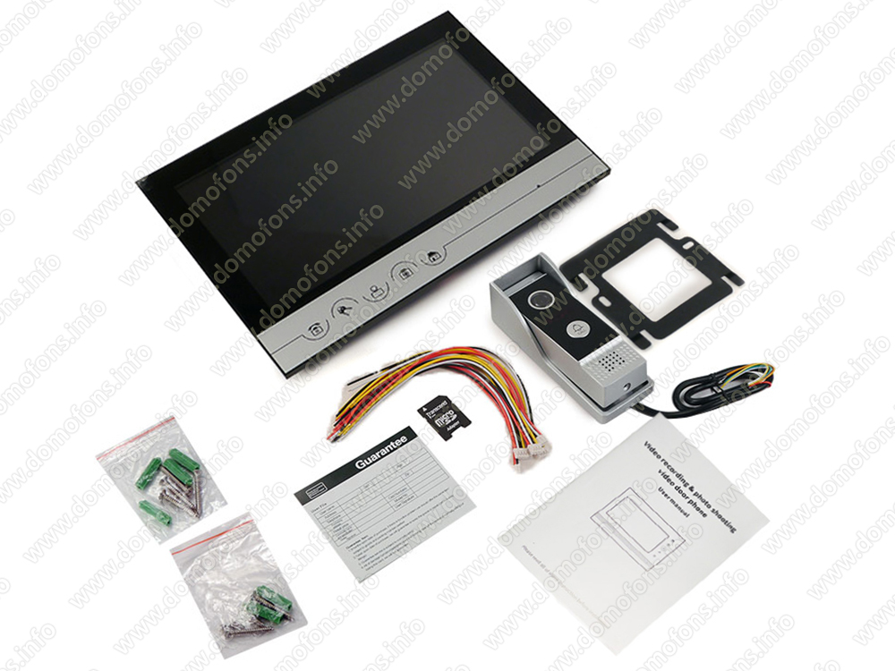 Проводной видеодомофон EP V90RM это 9-дюймовый цветной монитор с сенсорными кнопками и металлическая антивандальная вызывная панель со встроенной видеокамерой разрешением 700 ТВЛ. Монитор видеодомофона поддерживает установку карты памяти объемом до 32 ГБ и позволяет записывать фотографии или видео при вызове.