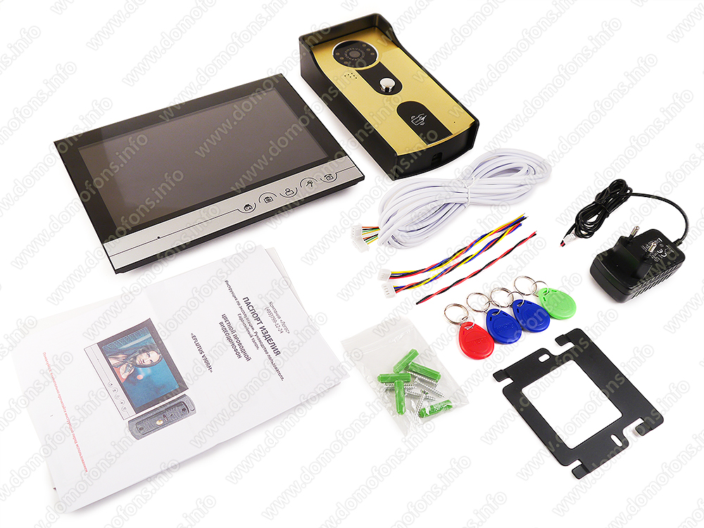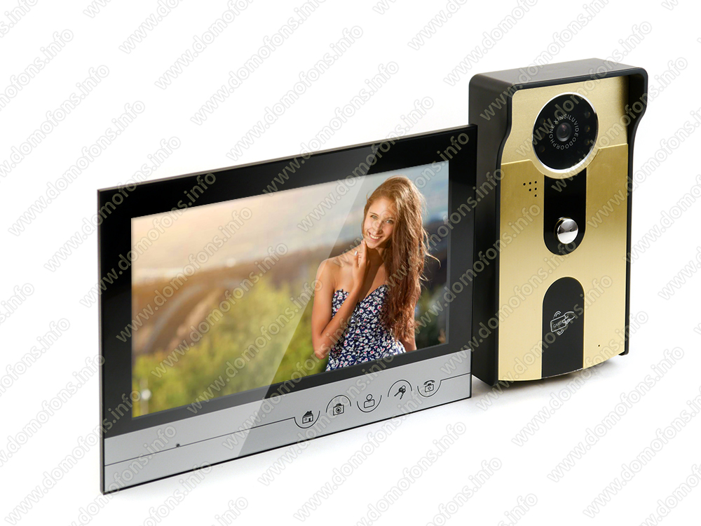 Проводной видеодомофон Eplutus V90XSL состоит из уличной вызывной панели со считывателем ключей и цветного монитора диагональю 9 дюймов и сенсорными кнопками. В монитор можно установить карту памяти объемом до 32 Гб для записи фото и видео во время вызова с панели.