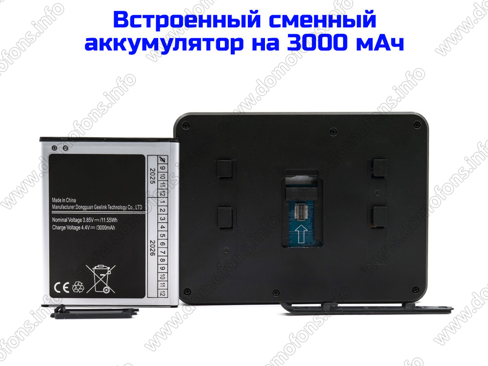 Питание от встроенного аккумулятора. Видеоглазок работает автономно продолжительное время от встроенного аккумулятора емкостью 3000 мАч.