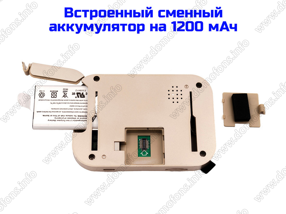 Питание от встроенного аккумулятора. Видеоглазок работает полностью автономно от встроенного аккумулятора емкостью 1200 мАч.