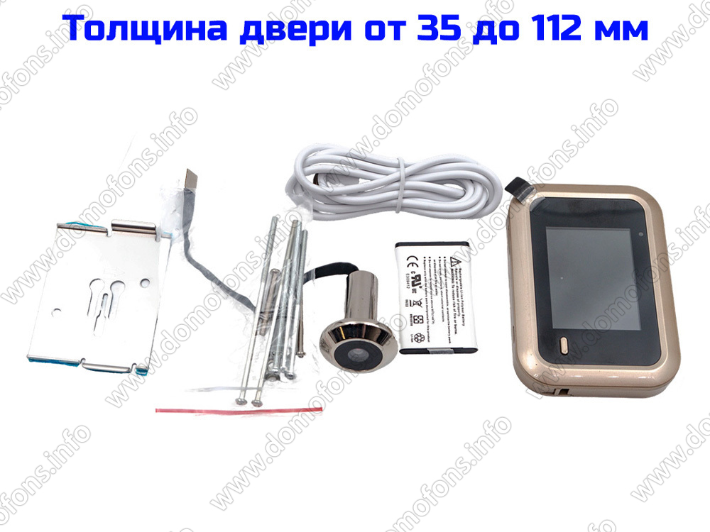 угол обзора 60 град, толщина двери: 35 - 112 мм, аккумулятор, цветной экран