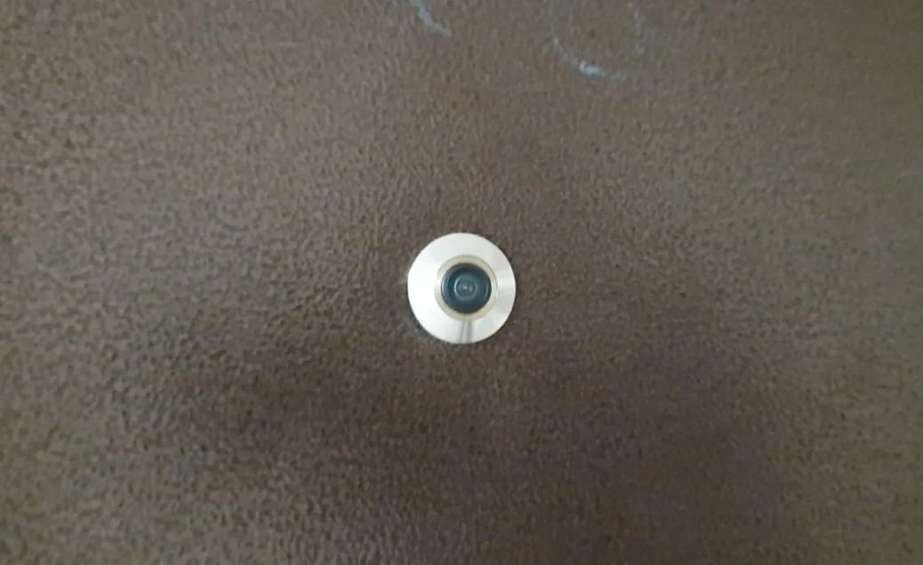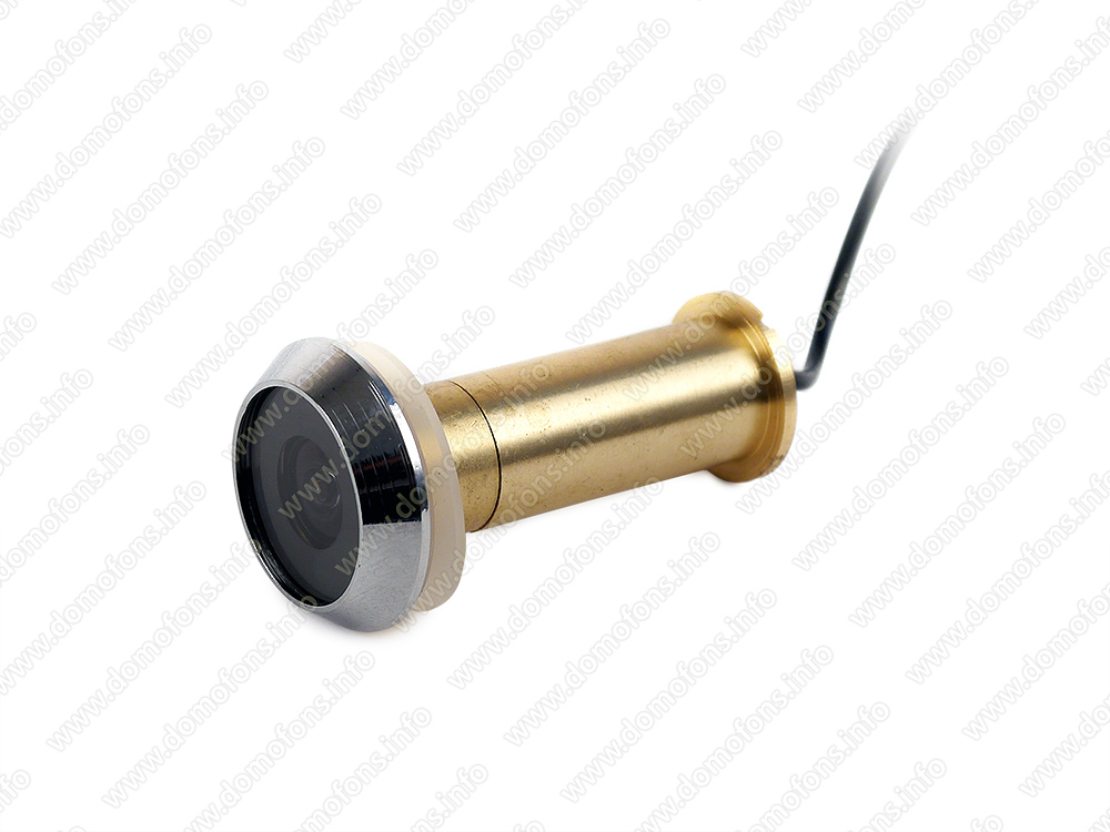 Латунная внешняя часть видеоглазка ничем не отличается от обычного дверного глазка. Таким образом невозможно заподозрить, что в нее вмонтирована видеокамера.