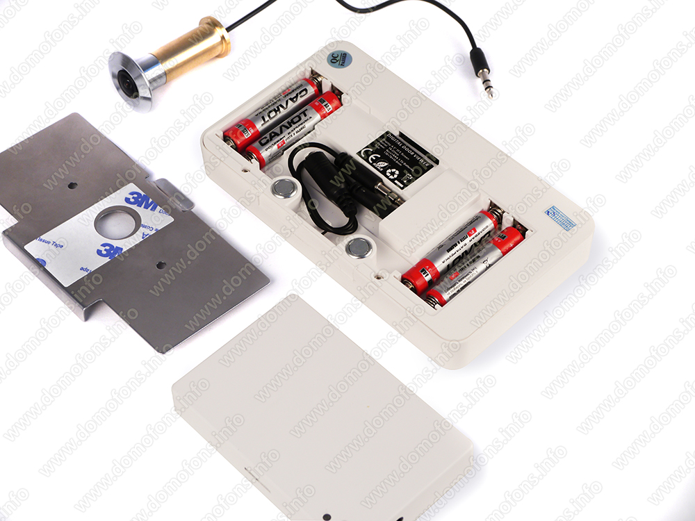 Видеоглазок монтируется прямо на место обычного дверного глазка. Монитор и Wi-Fi блок крепятся на внутренней стороне двери. Монитор питается от четырех батареек типоразмера AAA, а Wi-Fi блок требуется подключить к питанию с помощью адаптера из комплекта. Скачайте бесплатное приложение на смартфон, подключитесь к точке доступа Wi-Fi, которую раздает прибор (или подключите его к домашней Wi-Fi сети). Теперь, находясь в одной локальной сети с прибором, Вы можете выполнять настройку видеоглазка, просматривать видео онлайн и записанные видеоролики.
