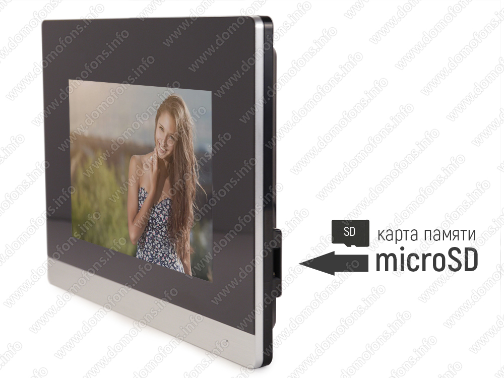 Запись на карту памяти. Для сохранения видеозаписей и фотографий в монитор необходимо установить карту памяти Micro SD объемом до 32 Гб (приобретается отдельно).