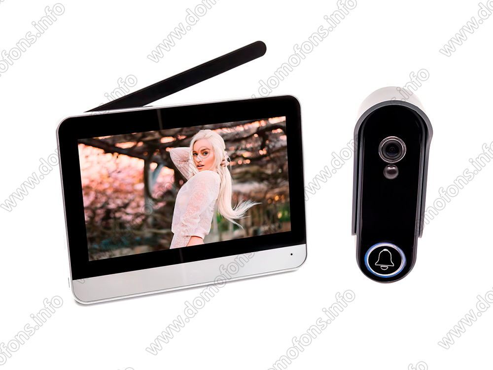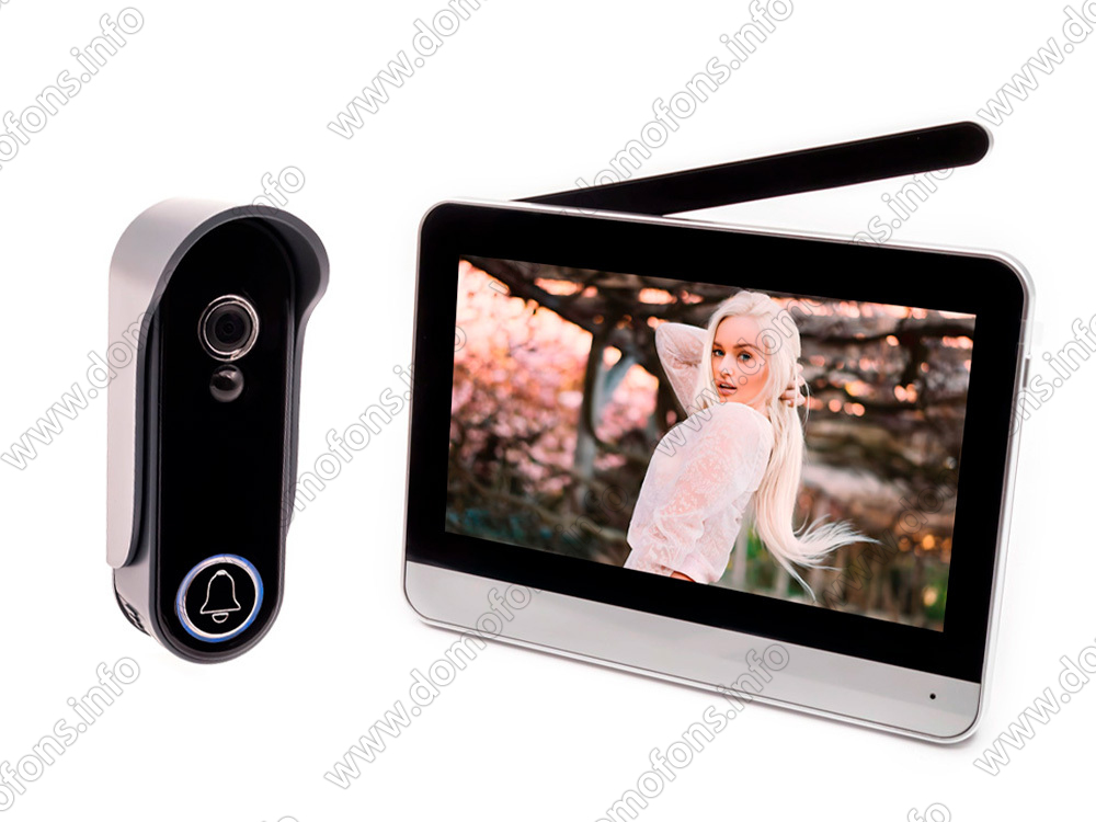Беспроводной домофон комплект «SkyNet 900» Беспроводной видеодомофон с записью с 7-дюймовым сенсорным экраном и беспроводная вызывная панель с камерой 2MP и функцией открытия замка.